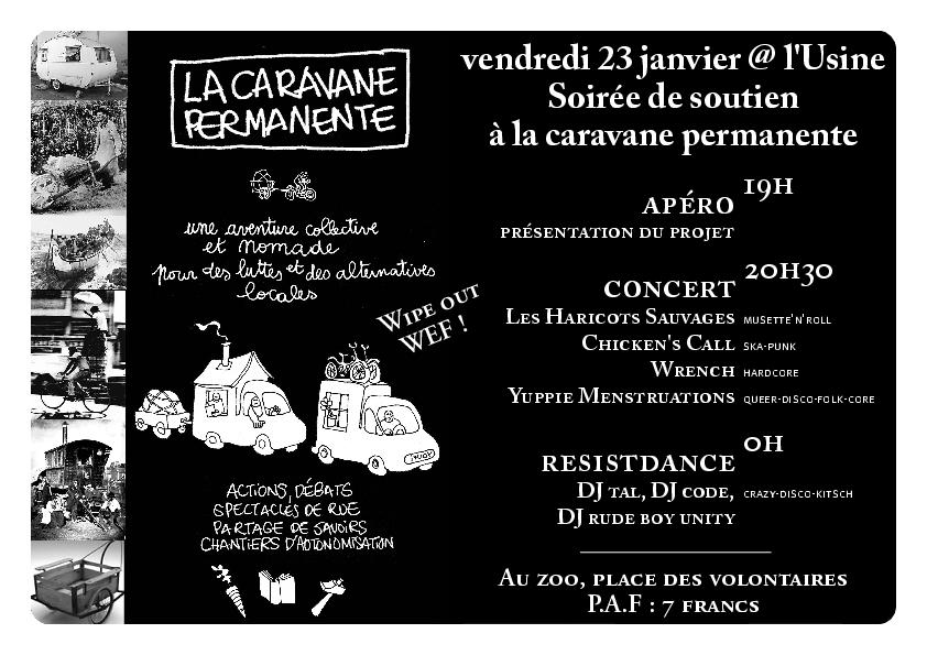 Soirée de soutien à la caravane, à l’Usine (Genève), en janvier 2004.